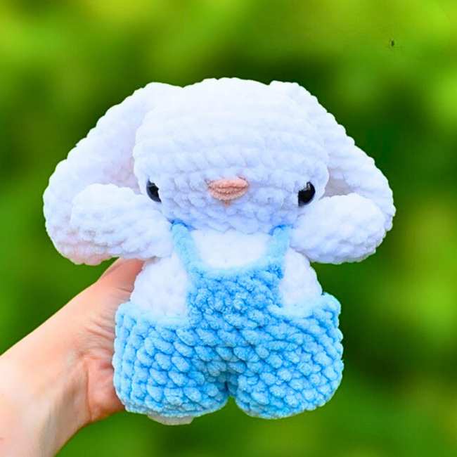 With a little fuzzy chenille yarn and the standard cotton yarn, it is the best Anniversary Bunny plushie. I love especially the eyes and the mouth design. You will love it, too.
