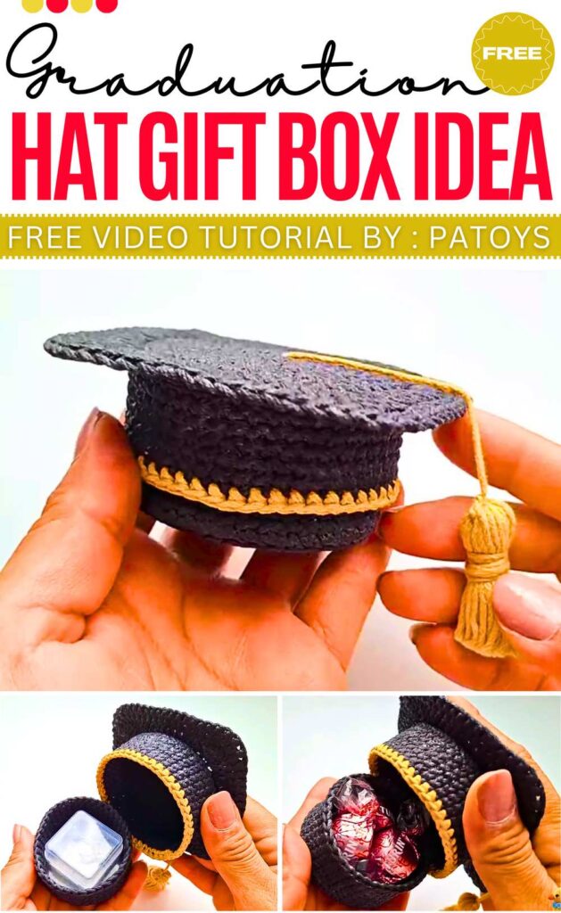 This functional Crochet Graduation Cap doubles as a charming gift box or candy holder. It features a rigid mortarboard design and a removable lid, making it a creative way to present jewelry or graduation keepsakes.