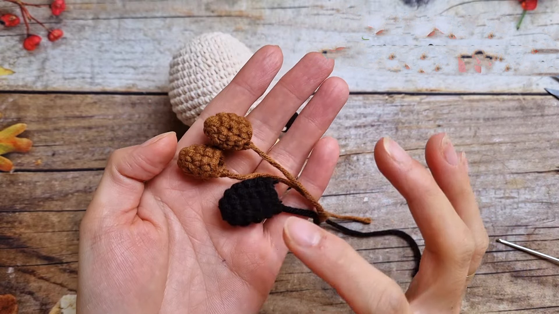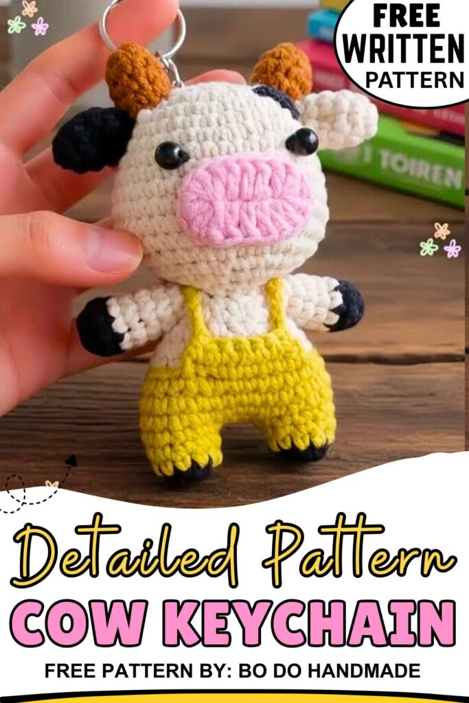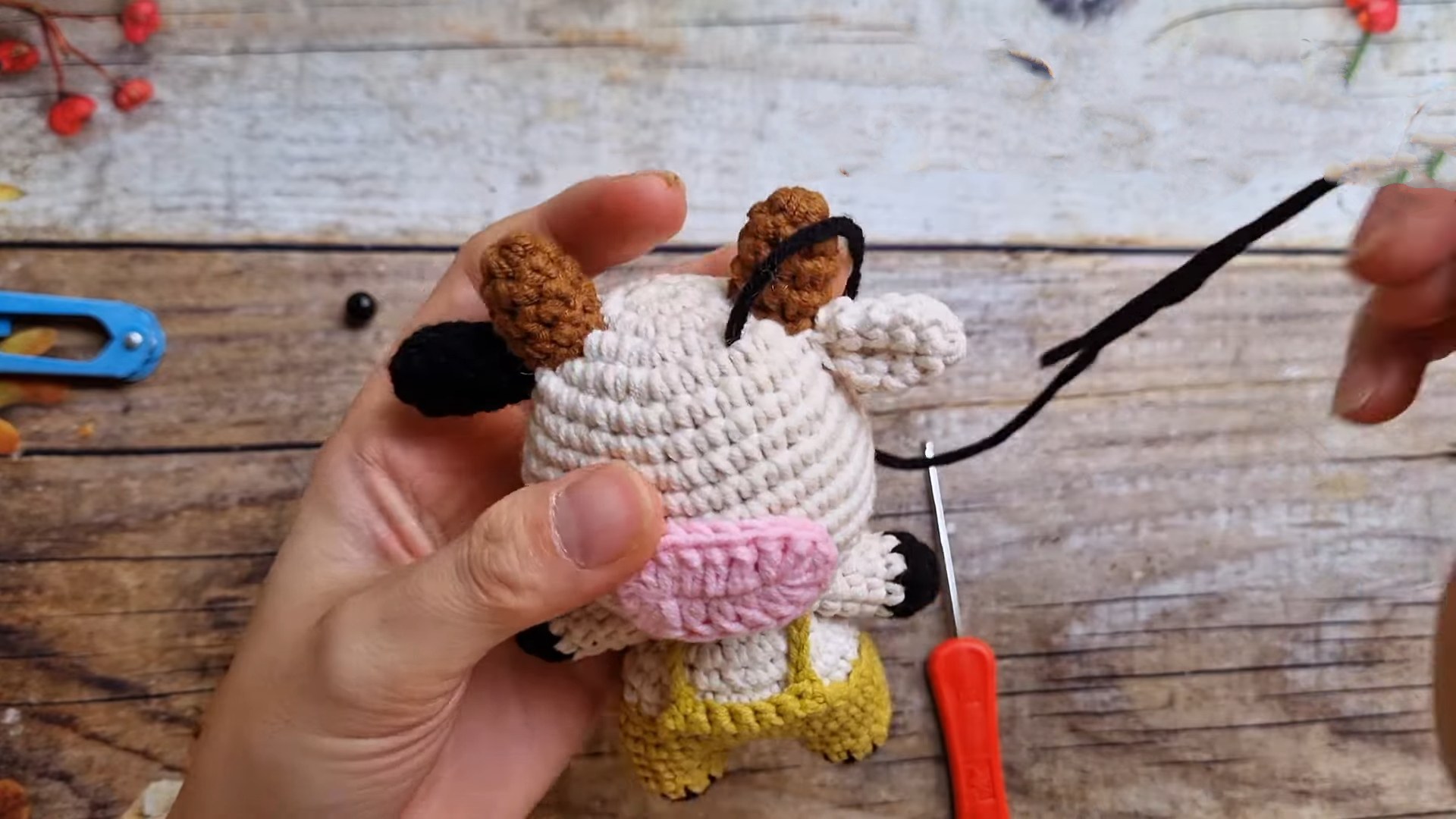 To make the buffalo keychain, you crochet small 3D pieces using yarn and basic crochet stitches. You start by making the buffalo’s head or body parts, then crochet the horns and other small details. After all the pieces are finished, you join them together and add a keyring so it becomes a keychain.