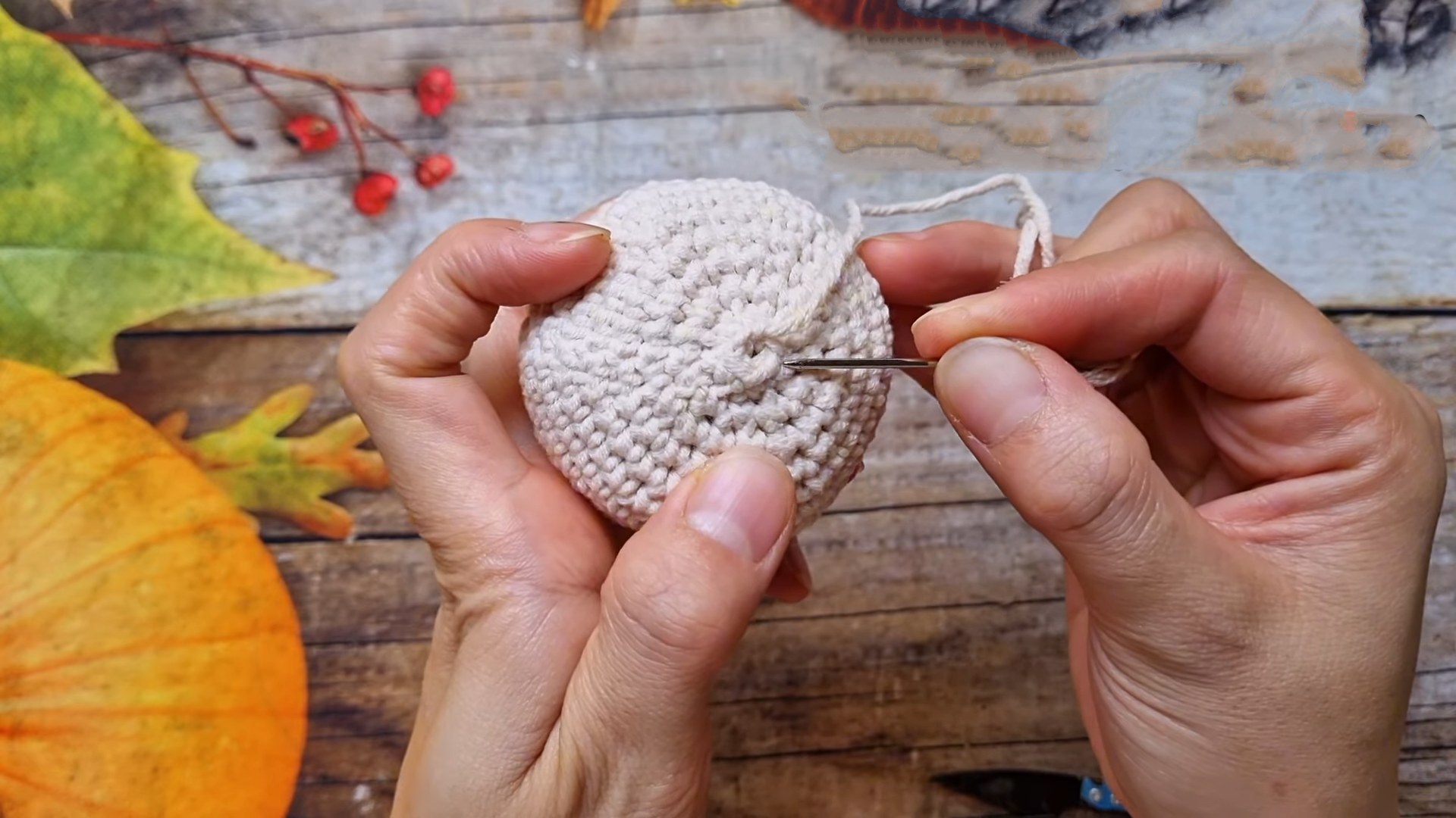 R17: ch 1, (1 sc, dec) rep around. Join with sl st. (12)