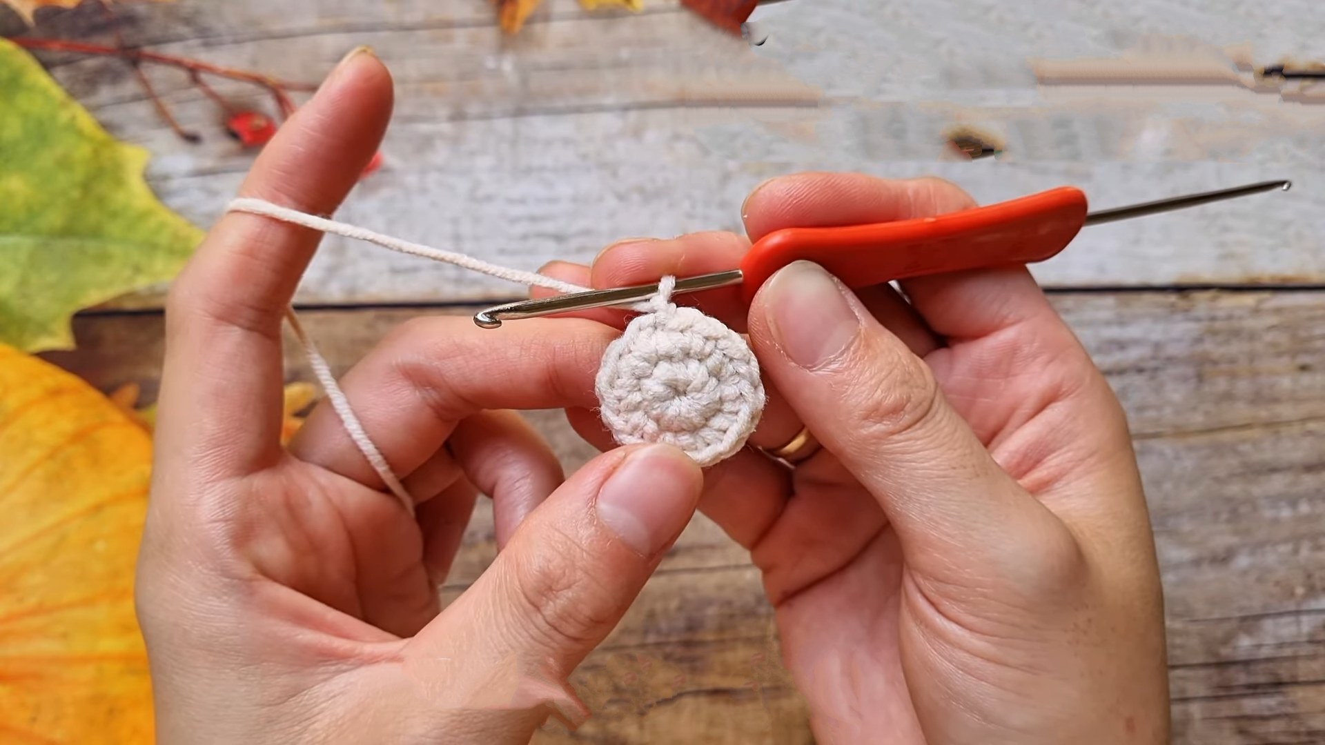 R3: ch 1, (1 sc, inc) x 8. Join with sl st. (24)