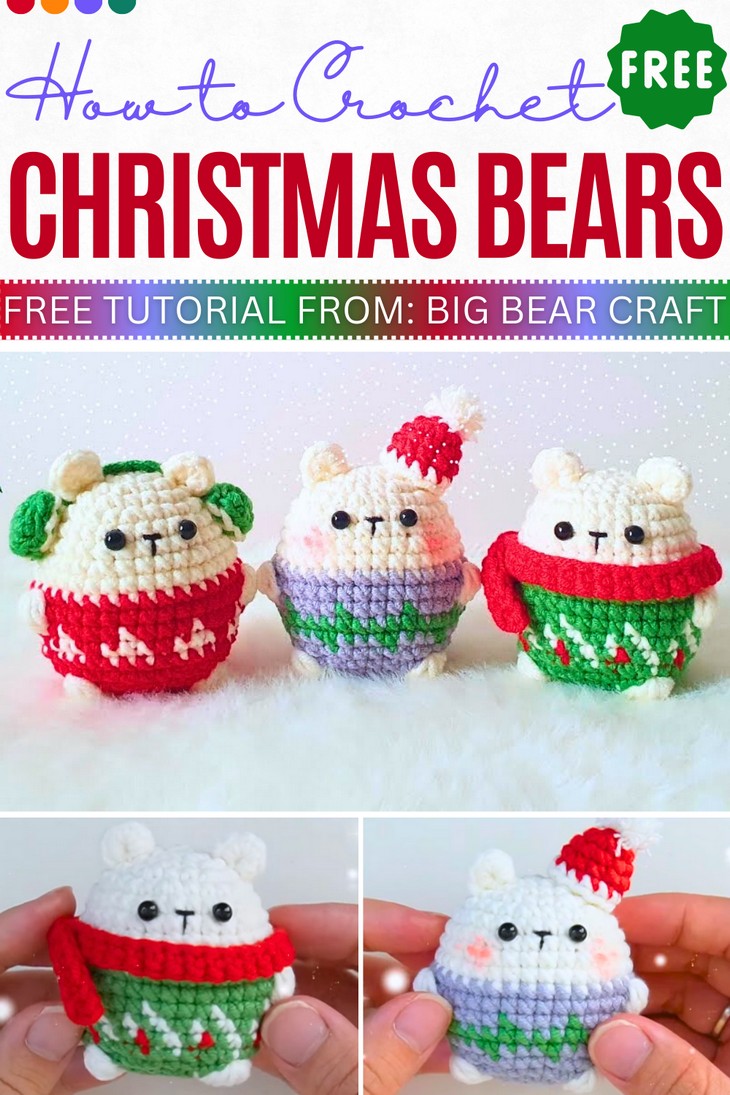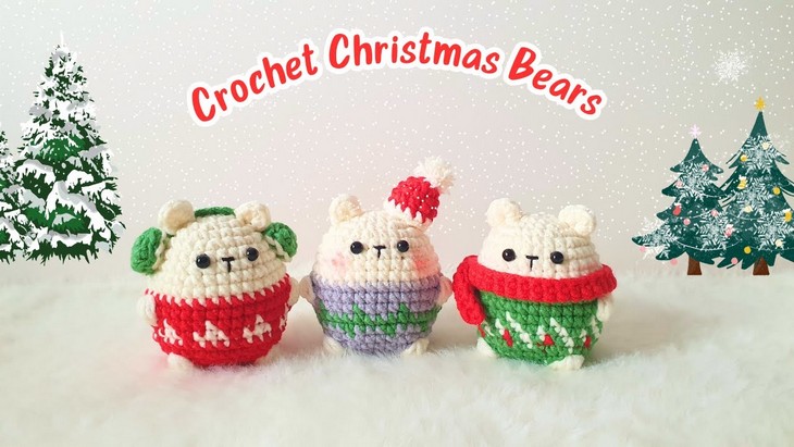 How to Crochet 3 Christmas Chubby Bear Amigurumi with Accessories