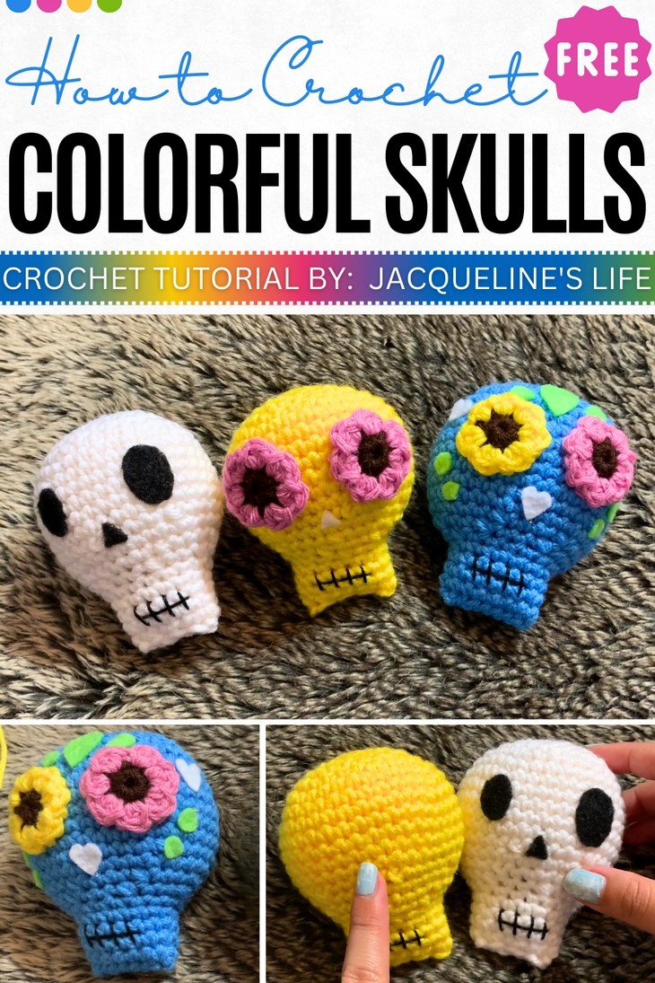 How to Crochet 3 Colorful Skull Amigurumi for Halloween