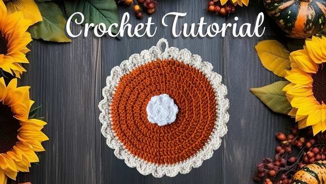 This tutorial by Bag-O-Day, learn how to crochet a full-size decorative pumpkin pie. The project involves crocheting two large circular discs, one in pumpkin orange and one in warm brown for the crust, using a series of double crochet increase rounds.
