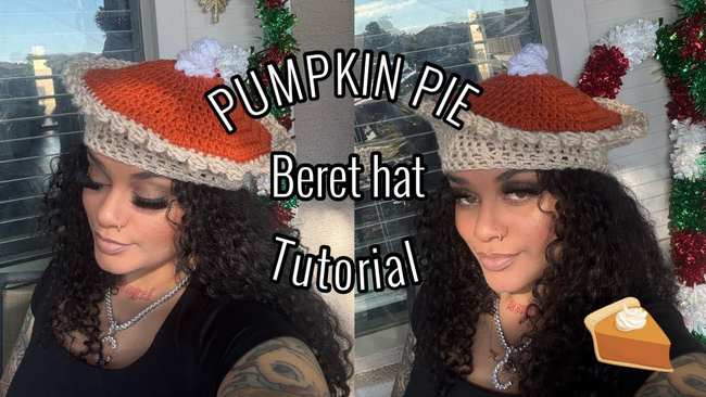 This pumpkin pie beret hat is so detailed and life-like. It will fit well on the head and then look exactly like the pie bowl. The edging this time needs popcorn stitch.