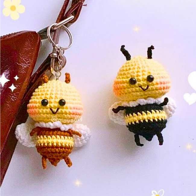 Learn how to crochet a smiling amigurumi bee with expressive detail that is a small doll. It features the bee’s plump, striped body and can be crocheted in a brown or black striped version. Crochet one for spring with the same thinner legs.