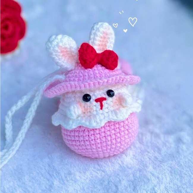 Learn how to crochet a 35-minute step-by-step tutorial for making a small, themed bunny and egg drawstring pouch. It is designed as a “mini rabbit bag,” specifically sized to hold Easter eggs or small treats. It uses standard crochet terminology, including magic rings (MR), single crochet (sc), and double crochet (dc) to build the rounded body and elongated bunny ears.