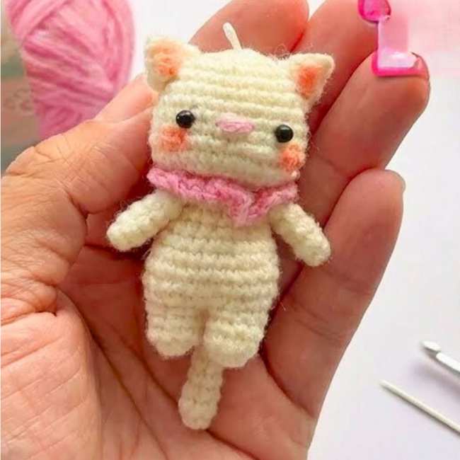 Learn how to crochet a mini cat Amigurumi doll, specifically designed for beginners. The project uses a “no-sew” or “low-sew” method, where the ears and tail are often crocheted directly onto the body to simplify the process for new crocheters.