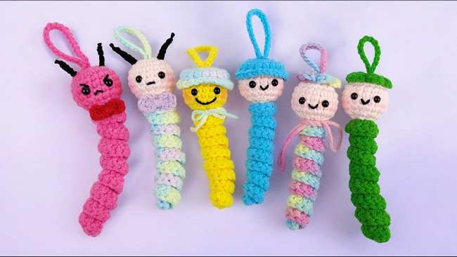 With this Tata’s tutorial, you can crochet a “Worry Worm” Keychain in any color, a small and comforting amigurumi project often used for “Random Acts of Crochet Kindness.” Use 5-ply milk cotton yarn (80% cotton, 20% acrylic), a 2.75mm crochet hook, and 5mm safety eyes.