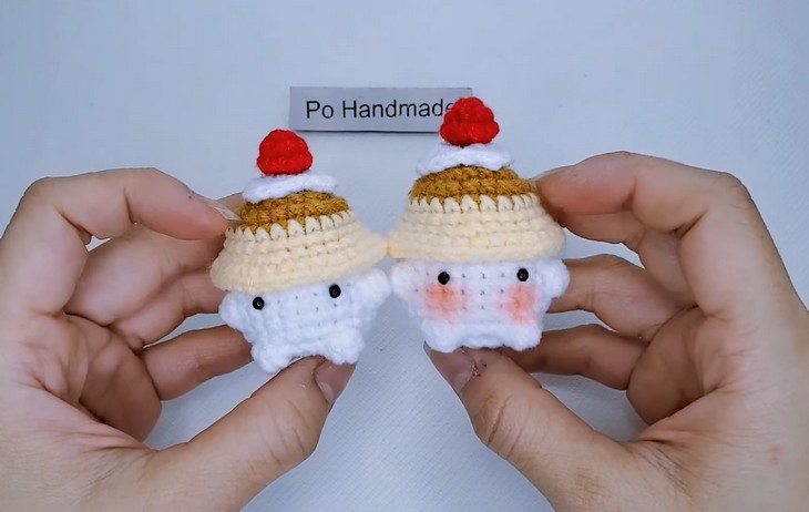 For a foodie, crochet this baby mushroom wearing a pudding hat as a fun gift. The pudding cap has a small cherry on top and needs color changes only twice. Intermediates can easily crochet this baby mushroom has everything staying almost the same as the popular baby mushroom pattern. The tutor suggests sewing or gluing the pudding cap to the mushroom body and the cherry to the cap for a secure finish. Overall, this food pattern mushroom amigurumi is a must-have.