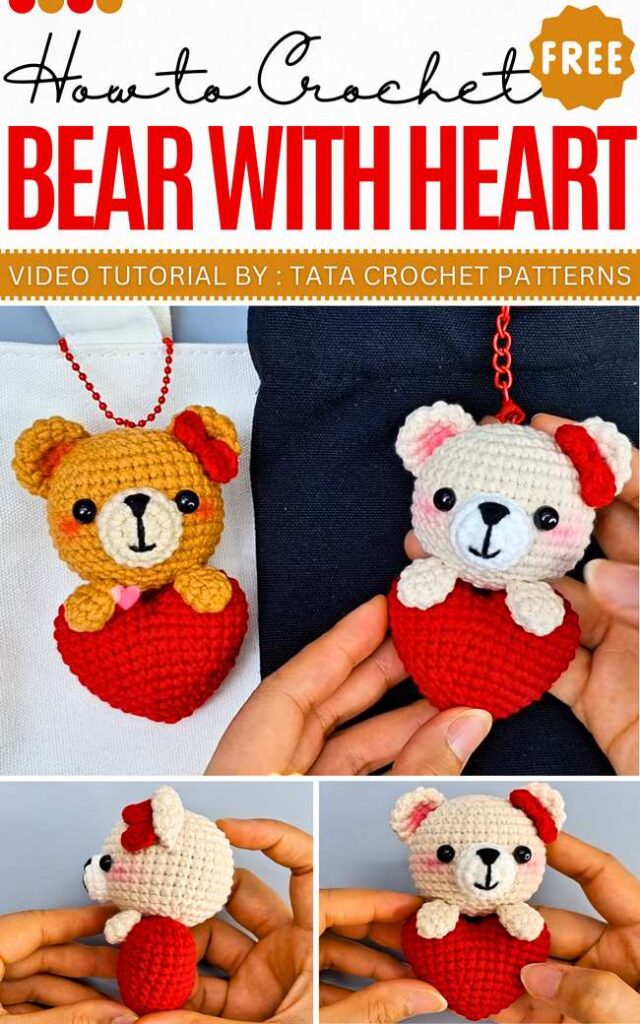 02 of 05 Crochet Keychain Heart Bears