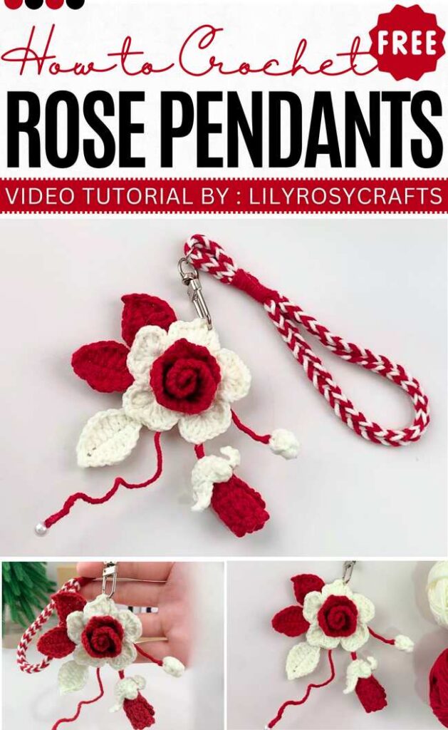 Here is a step-by-step guide on how to crochet a Barbie Rose Pendant. It features crocheting a flower center, outer petals, flower buds, calyxes, and leaves, which are then assembled into a lovely arrangement.