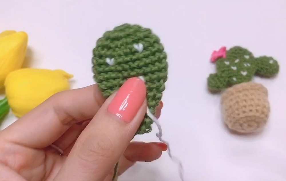 The designer behind this cactus amigurumi is @NITKA_KZ – she has quite a good grasp on kawaii amigurumi designing with added cuteness and surprises.