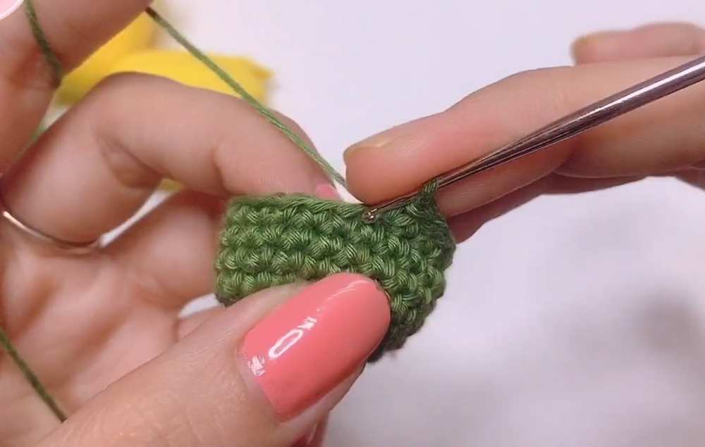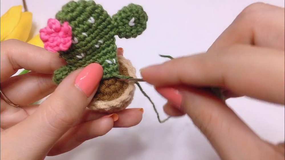 - Slst to finish. Leave a long tail for sewing to the pot.