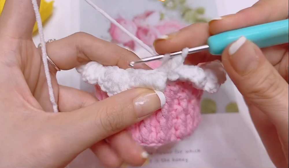 - R1: Join white yarn. 48 sc around. (48)