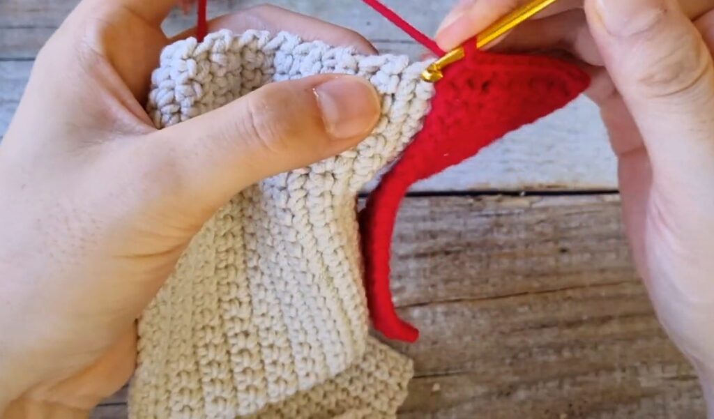 Flap Top Edge: Pull the Bow Panel slightly forward/down and work sc only into the Flap stitches (leaving the top edge of the Bow Panel open/loose).