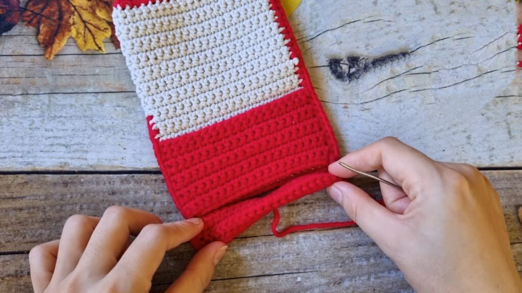 Pocket Sides: Work sc through both layers (front and back of the folded base) to seal the pocket.