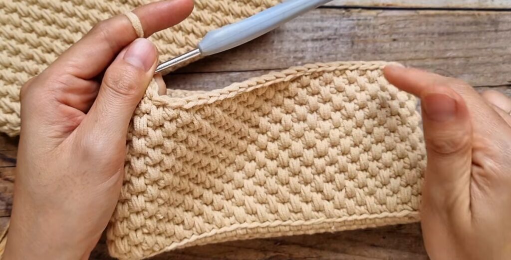 Crochet the base: Start with a flat bottom and then work in circles to make the sides.