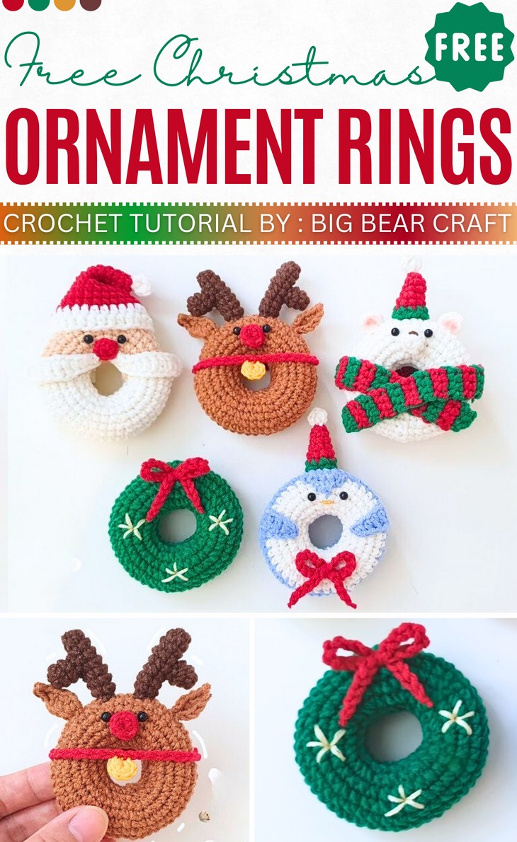 How to Crochet Christmas Ornament Rings (Santa, Reindeer, & 3 More)