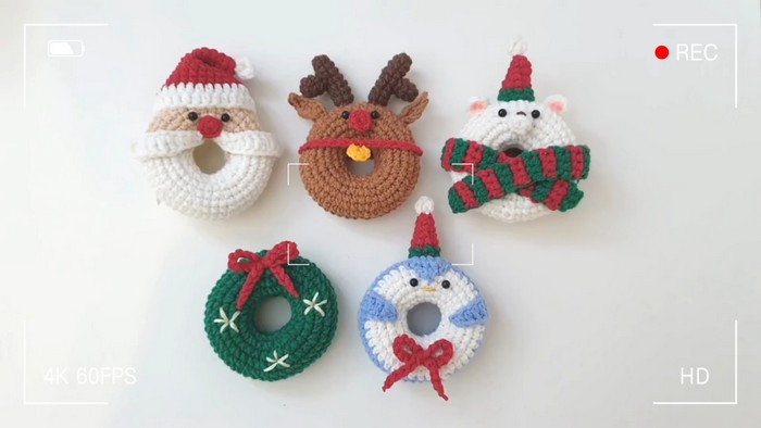 You can learn to crochet your favorite donut ornament or all of them for a non-repeating Christmas tree embellishment. Each ornament is well-designed: Santa has a slouchy hat, Reindeer has a bell belt, the bear wears a scarf and a hat, and similar personalization.