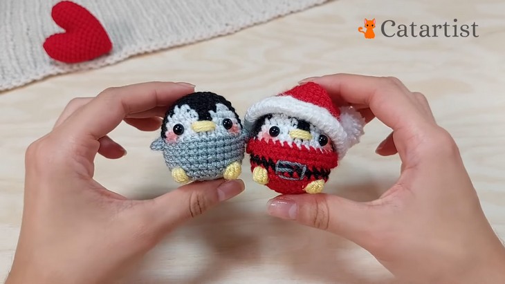 I am so excited to share today’s penguin tutorial by Catartist MX, ’cause this is the cutest I have ever seen. You will learn how to crochet two mini Christmas penguins: a classic black one for any time of the year and a dressed Santa version for Christmas gifting that are so quick and low-sew.