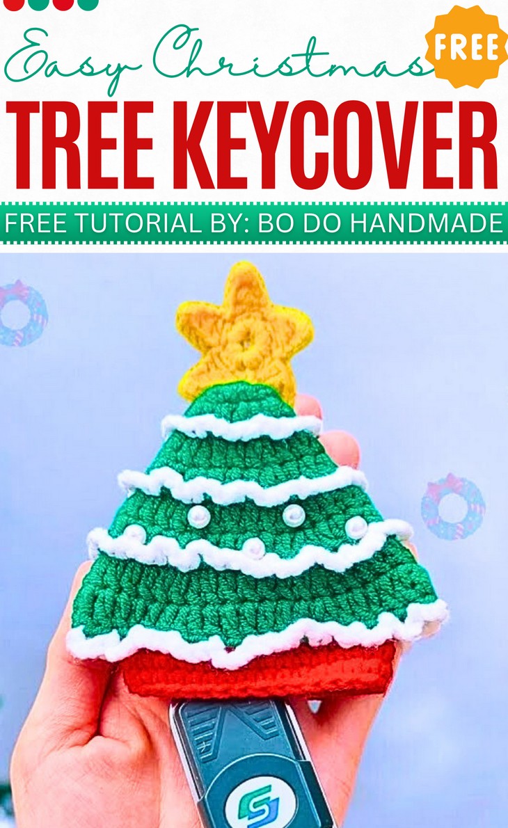 Last time, I suggested turning the Christmas tree I shared a tutorial for into a key pouch. (Really lovely idea!). But to guide you better, I am here with an easy Christmas tree key cover and keychain tutorial for absolute beginners. Just like the previous, you will crochet an unstuffed tiered and snow Christmas tree, but with a twist: