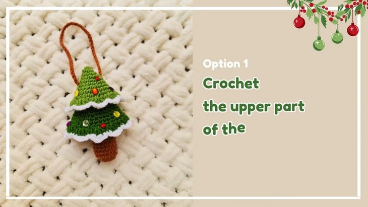 Quick Summary & Skill Level: In the tutorial, you will also find the written patterns for crocheting the upper part of the tiered and the lower part of the tiered. The green tree sections need a combination of single crochet (sc) for height, increase, and decrease. The Shell Stitch border by worked in the round and color changes at the white edging.