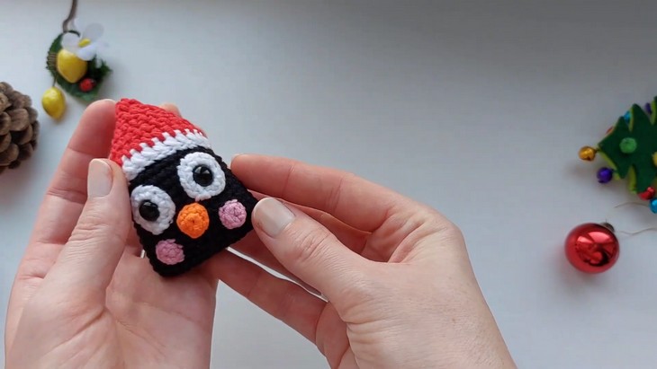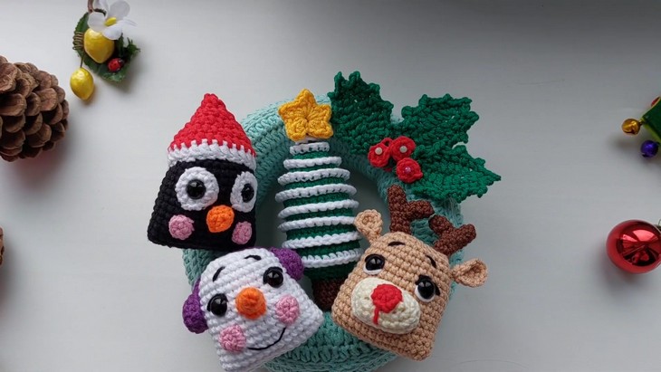 Following the same tutorial, you will also learn how to crochet the Christmas ring and how to add these rings seamlessly to the ring. Each of these Christmas ornaments is designed in the same theme, that is, the chubby and kawaii faces of a snowman, reindeer, penguin, and Santa. So, definitely crochet this set!