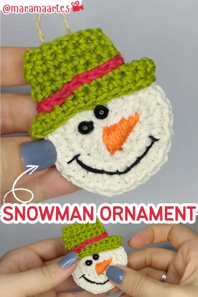 Find out how to crochet a quick and easy snowman face as a Christmas ornament, cute and easy. It can be used to hang on a tree, decorate a table, or even function as a napkin holder.