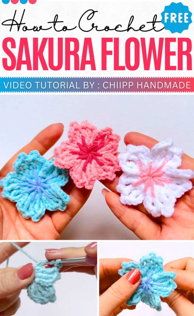 This spring, don’t miss crocheting this miniature Cherry blossom or Sakura flower in white or pink and two other color variations. To make it in perfect shape, cute, and well-detailed, use cotton yarn with an A 2.5mm crochet hook.
