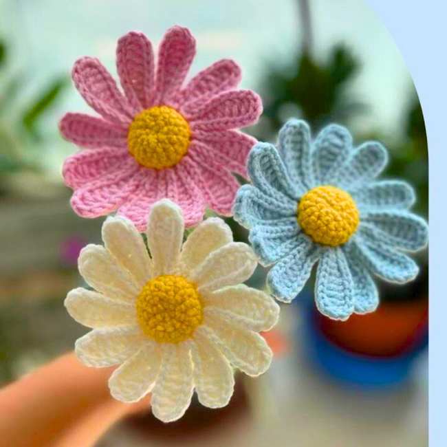 You can crochet daisies with many different petals, too. Even the daisy doll keychain. You will love all of them.
