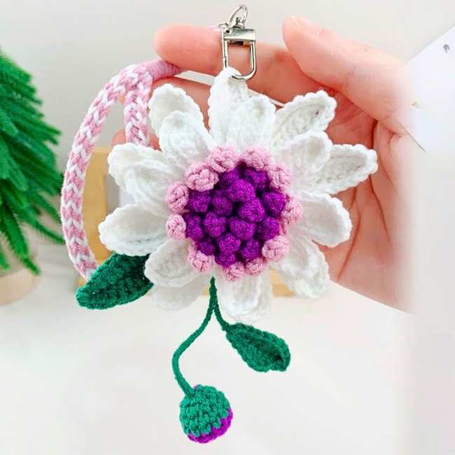 05 of 20 Crochet Daisy Keychain with Many Petals