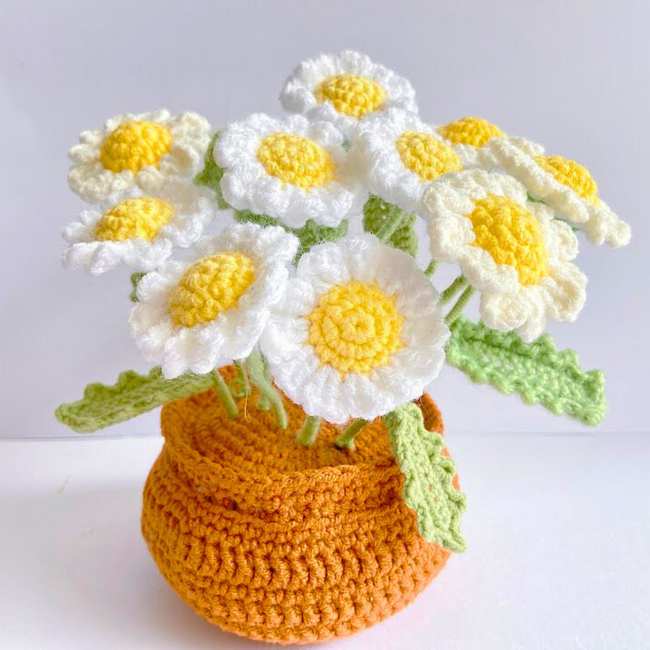 With the craft wire stem, you can put this in your vase and also crochet a bouquet of the daisy. Choose from the white, pi,nk or blue. The orange centre will work fine.