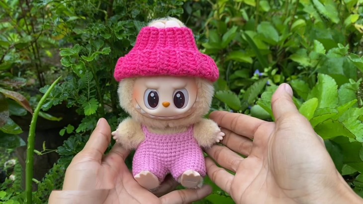 If you are looking for the easiest, basic, and simple outfit for your Labubu, here is a stitch-by-stitch tutorial from My Handmade. Learn how to crochet these Labubu overalls in just 20 minutes, especially designed for the sitting Labubu pose called the “Have a seat Labubu” and roughly a 17 cm doll. This crochet jumpsuit is super customizable and can be coupled with a hat in a dark shade of the one used for the suit. This Labubu cloth is perfect for even absolute beginners, as it uses the basic crochet stitches. Whether it’s HeHe, SiSi, BaBa, or any color of Labubu you have, it will look great.