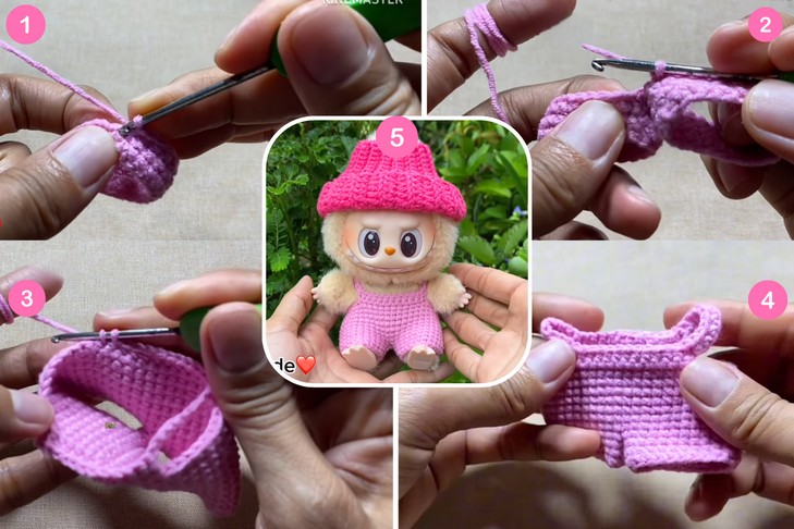 Here’s a quick one-line guide to each crochet stitch for this clothes set for Labubu: