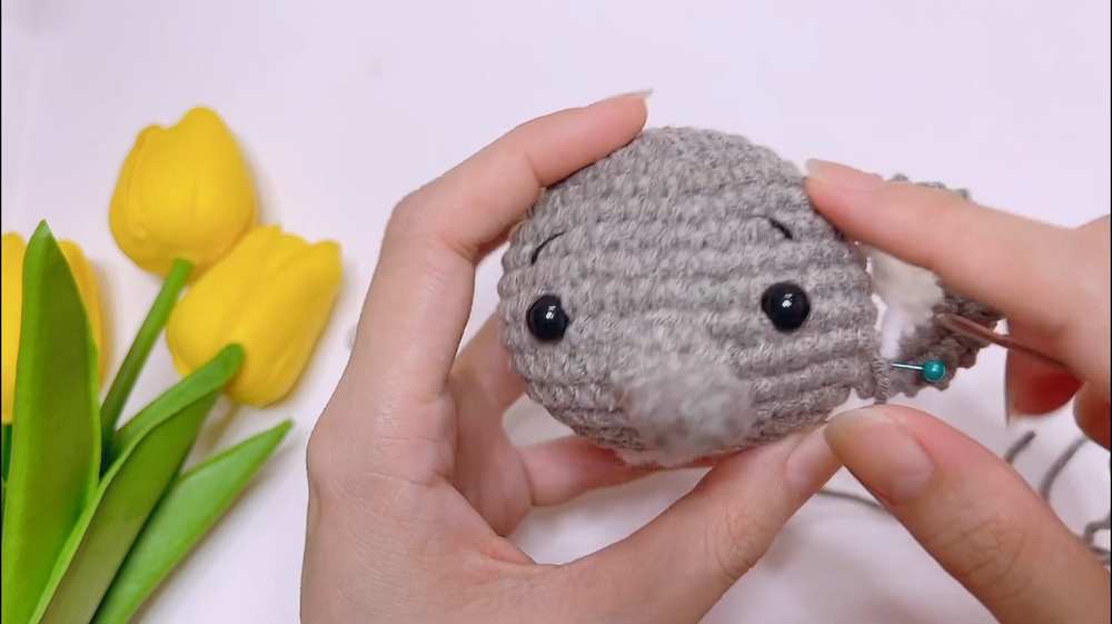- Facial Details: Use black yarn to embroider eyebrows. Count 2 rows up from the eyes. Sew a slanted line (approximately 1 stitch wide) to create a gentle expression.