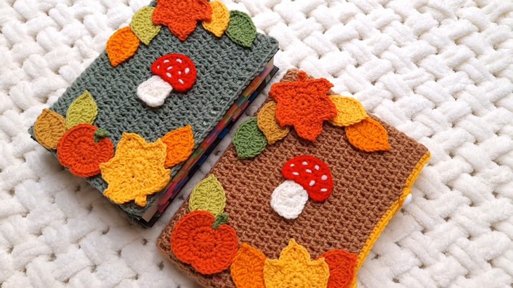 How to Crochet Fall Book Sleeve (Leaves, Pumpkin & Mushroom)