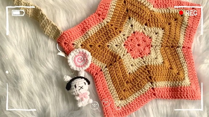 This video tutorial demonstrates how to crochet a beautiful star-shaped bag that can be worn cross-body or on one shoulder. The project involves working in the round, using basic stitches such as long stitches (double crochet), chain stitches, and pull-out stitches.