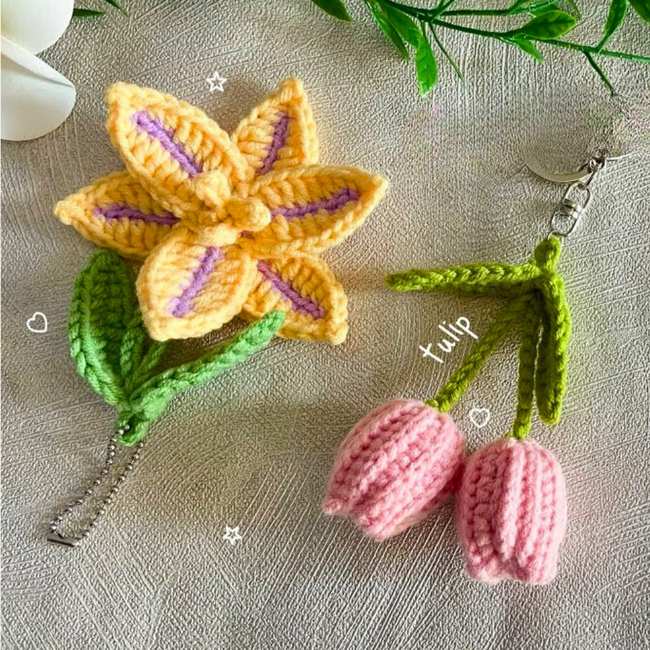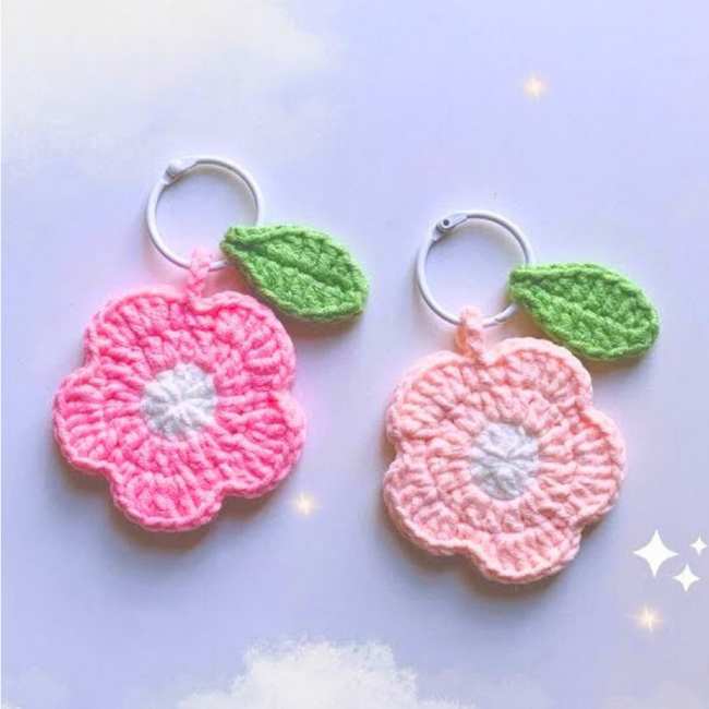 15 Free Crochet Flower and Leaf Keychain Patterns for Spring