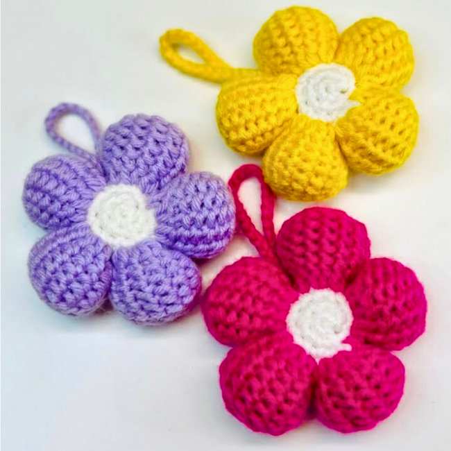 09 of 15 Crochet 3D Flower Keychain