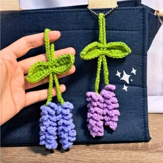 14 of 15 Crochet Lavender Flower Keychain