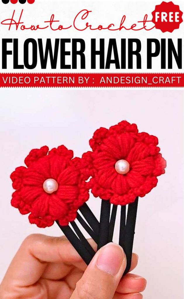 Here is how to crochet a festive flower hair clip, particularly themed for the Chinese New Year. However, you can also crochet it with other colors, like pink or purple. You will be crocheting a puff stitch flower, finished with an interesting crochet border, which is actually quite like petals.