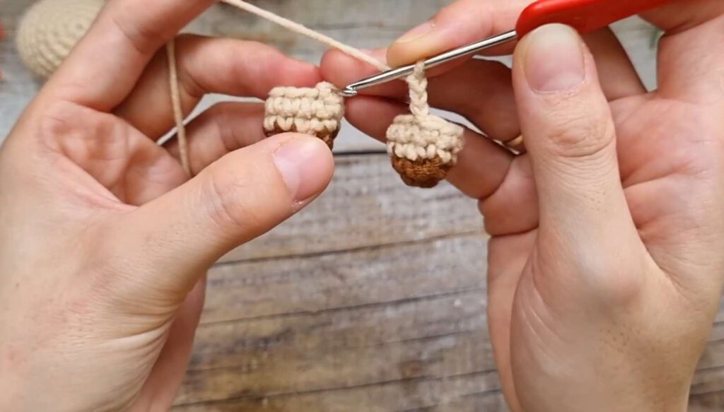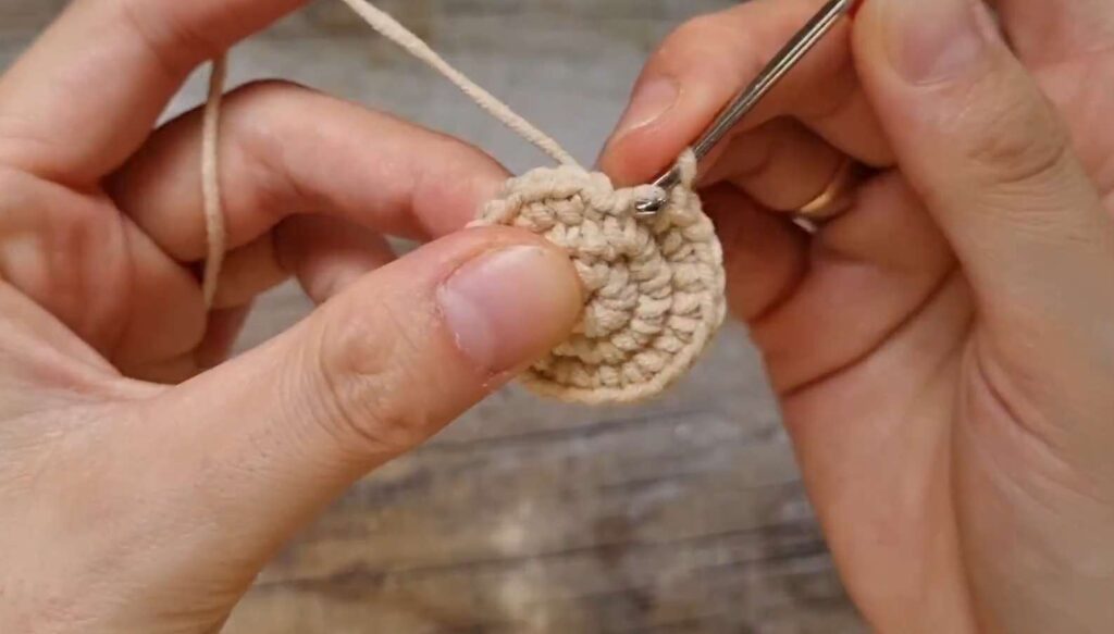 R3–R4: (Change to body color) 9 sc (9)