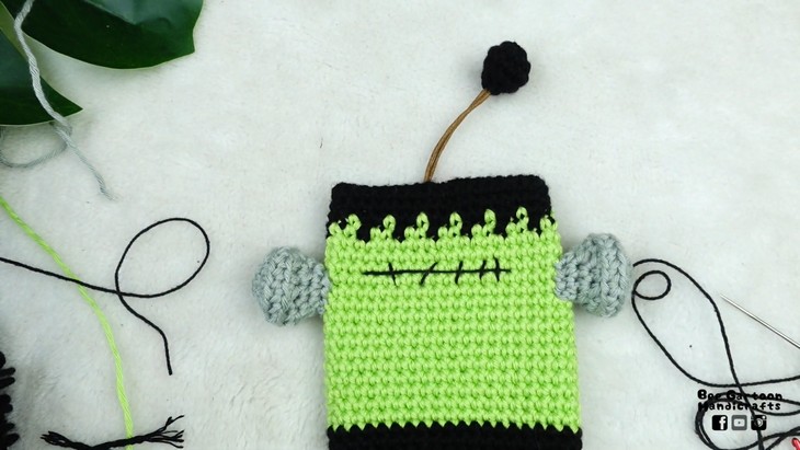 About the Designer: The designer behind this Frankenstein face pouch is @beegartoonhandicrafts – she has specialized in particularly amigurumi dolls and bag charms, but also tried many irresistible flat projects like a frog hairclip, hat, and this pouch. She has tried almost all popular characters, including Hello Kitty, Mickey Mouse, and Chip and Dale, plus animals like a crochet cat, a capybara, a bear, a pig, a penguin, and many more. She even has a sushi tutorial and holiday-themed projects like a Christmas bauble. You will simply love to explore her library that spreads cuteness!
