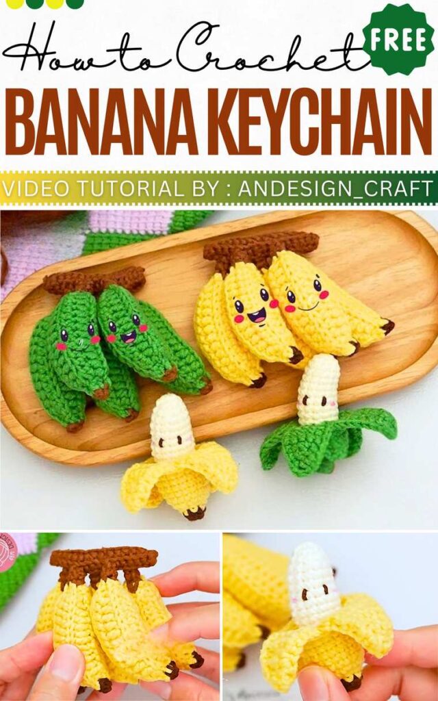 First, you crochet the inner banana body, the outer peel, and then individual bananas for a bunch. For completion, assemble the banana to the crocheted stem using sewing. It will make a perfect decoration.