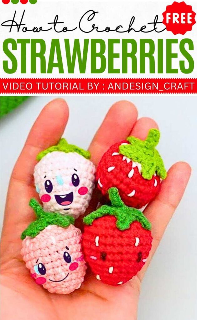 Spring is around the corner, so let’s crochet these cute amigurumi strawberries with kawaii faces. You can choose from the chocolate coaster, strawberry, red, pink, and white strawberry.