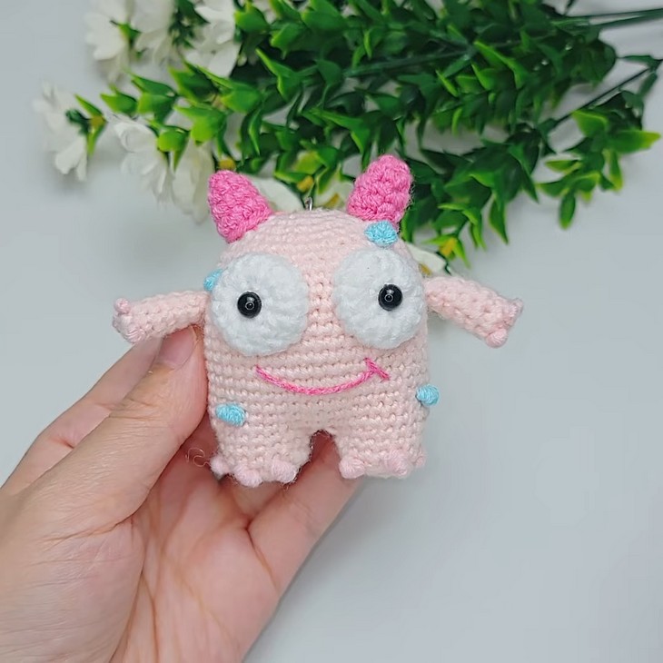If you want to bring cheer on Halloween instead of fear, here is an amigurumi project! With a stitch-by-stitch tutorial, learn how to crochet this funny and cute chubby monster keychain in any of two color combos that are equally fine as a birthday gift at any time of the year. The monster pattern needs a little sewing for large googly eyes, horns, and add-on spots all around the body. This monster amigurumi is so small but full of adorable detailing that kids will love to receive.