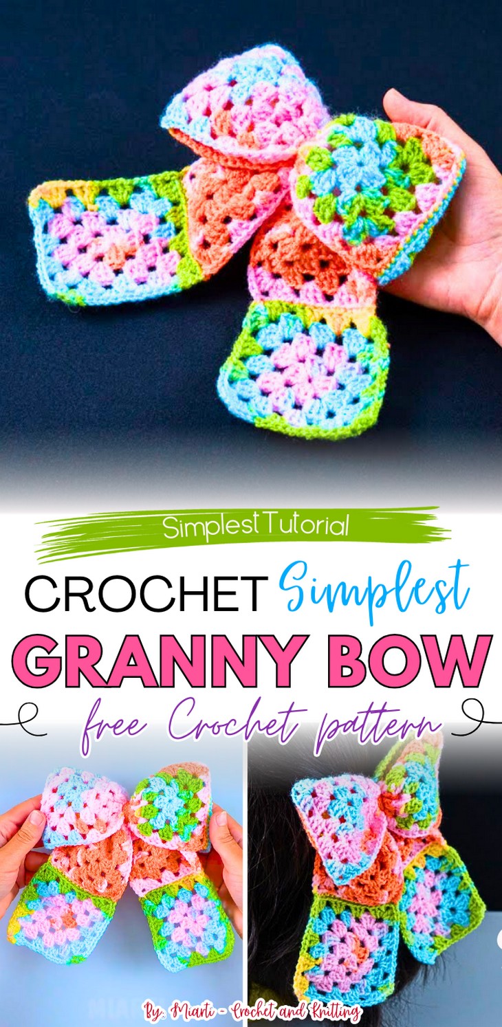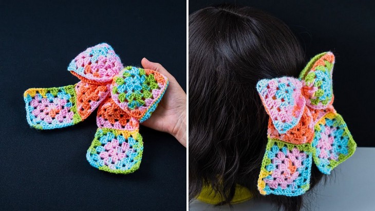 How to Crochet Granny Square Bow (Colorful & Super Easy)