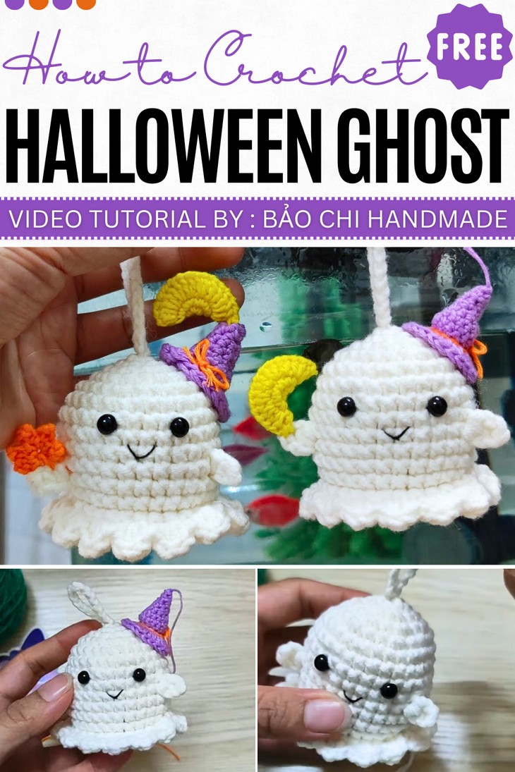 Boo ghost with tiny accessories is no doubt the cutest and quickest Halloween project. So, with a stitch-by-stitch tutorial, learn how to crochet a small, cute ghost with a witch hat, which can be used as a keychain, ornament, or presented as an irresistible Halloween gift. This ghost amigurumi needs no sewing, making it not only lightweight but an adorable hand puppet, too. From crocheting the wavy bottom and small arms to attaching the tilted witch hat, you are gonna learn everything with a complete guide from Bao Chi Handmade.