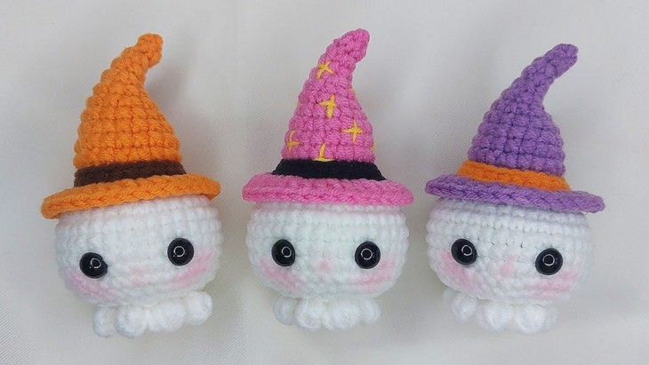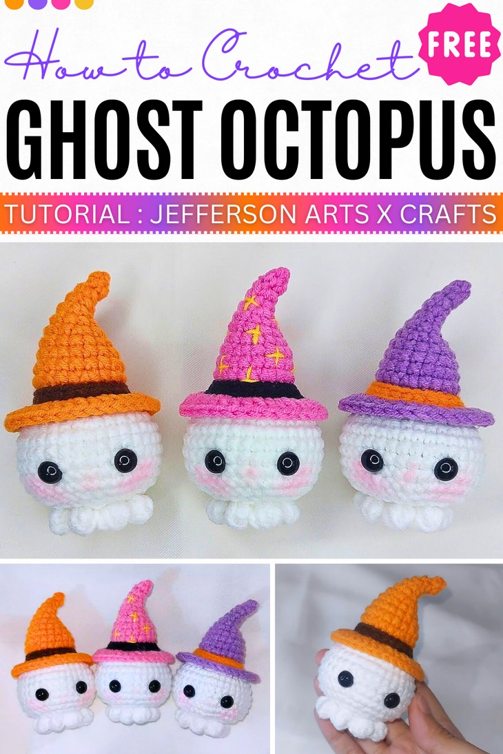 How to Crochet Halloween Ghost Octopus Amigurumi with Witch Hat